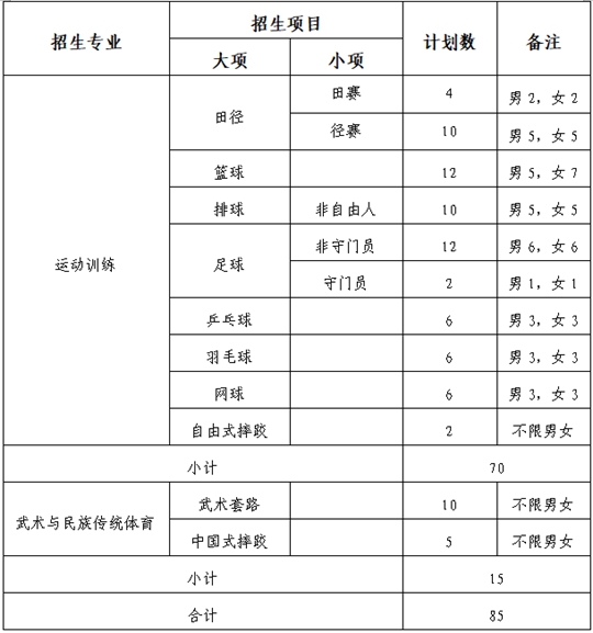 。ㄒ唬┻\動訓練、武術與民族傳統體育專業實行單獨招生,經國家體育總局審批備案后,提前錄取。