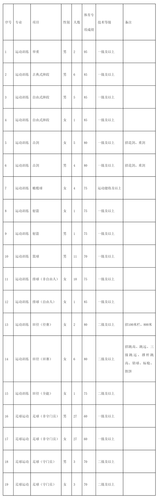 2.運(yùn)動訓(xùn)練專業(yè)招生計(jì)劃為60人,足球運(yùn)動專業(yè)招生計(jì)劃為60人,最終錄取人數(shù)視生源情況及上級主管部門批復(fù)決定。