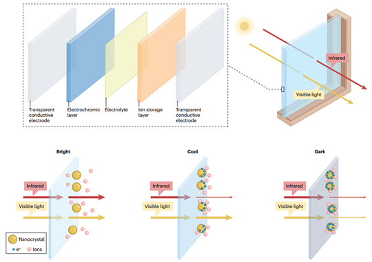 圖3. 電致變色智能窗戶的光熱調節機制