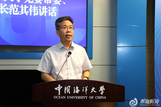 范其偉代表學(xué)校向加入藍(lán)夢拔尖人才實(shí)驗(yàn)班的全體新生表示祝賀。他指出,藍(lán)夢拔尖人才實(shí)驗(yàn)班的設(shè)立是學(xué)校深入貫徹落實(shí)習(xí)近平總書記重要回信精神的生動實(shí)踐,也是學(xué)校落實(shí)立德樹人根本任務(wù),踐行為黨育人、為國育才初心使命的重要舉措。希望同學(xué)們立報(bào)國之志,勇?lián)鷷r(shí)代使命;守崇本之道,筑牢海洋根基;懷拓新之思,敢于創(chuàng)新突破,為強(qiáng)國建設(shè)、民族復(fù)興偉業(yè)作出更大貢獻(xiàn)。