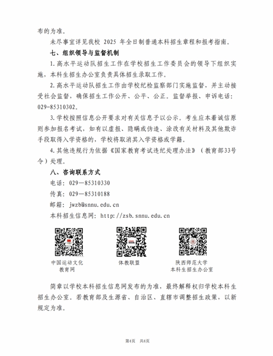 陜西師范大學2025年高水平運動隊招生簡章