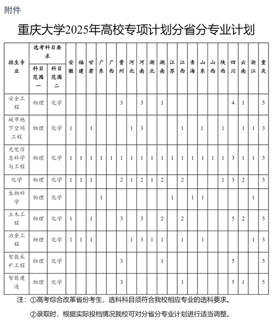 附件:重慶大學2025年高校專項計劃分省分專業計劃