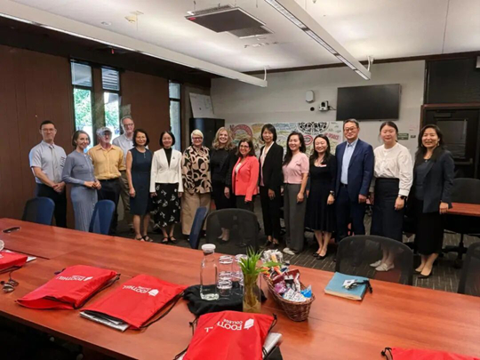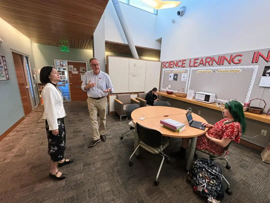 在舊金山訪問期間,代表團(tuán)拜訪了硅谷發(fā)源地的Foothill College,作為全美最好的社區(qū)大學(xué)之一,校長Kristina Whalen介紹了學(xué)校的特色:憑借與加州多所高等院校的學(xué)分轉(zhuǎn)換合作優(yōu)勢,成為學(xué)生升學(xué)名校的重要“跳板”。代表團(tuán)通過座談與實(shí)地考察,系統(tǒng)了解該校辦學(xué)特色、學(xué)科布局及人才培養(yǎng)模式;雙方圍繞合作方向深入磋商,初步達(dá)成暑期學(xué)校聯(lián)合共建、探索等合作意向,為學(xué)生搭建更靈活、更廣闊的學(xué)習(xí)與升學(xué)通道。之后訪問舊金山大學(xué)時(shí),代表團(tuán)受到了舊金山大學(xué)亞太創(chuàng)新與管理研究中心主任楊小華教授及團(tuán)隊(duì)的熱情接待。雙方聚焦暑期學(xué)校聯(lián)合運(yùn)營、國際學(xué)術(shù)會(huì)議共辦、體育項(xiàng)目交流、師生聯(lián)合培養(yǎng)四大核心議題,逐項(xiàng)梳理合作細(xì)節(jié)、明確推進(jìn)路徑。此次會(huì)談進(jìn)一步細(xì)化了兩校國際化合作內(nèi)容,為后續(xù)合作項(xiàng)目高效落地、提升合作實(shí)效奠定了堅(jiān)實(shí)基礎(chǔ)。