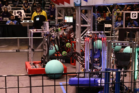 然而,海外征途并非一帆風(fēng)順。曾雨淇團(tuán)隊(duì)首先遭遇了設(shè)備電壓差異的挑戰(zhàn)——從國(guó)內(nèi)帶去的焊臺(tái)無(wú)法適應(yīng)美國(guó)120V電壓,導(dǎo)致維修工具失效。緊急時(shí)刻,在3925隊(duì)的慷慨幫助下,他們借助對(duì)方的場(chǎng)地和設(shè)備完成關(guān)鍵零件的切割和調(diào)試,化解了危機(jī)。此外,比賽場(chǎng)地的光線條件與訓(xùn)練環(huán)境有所不同,對(duì)機(jī)器人的視覺(jué)識(shí)別系統(tǒng)提出考驗(yàn)。團(tuán)隊(duì)迅速調(diào)整攝像頭參數(shù)與曝光補(bǔ)償,確保了機(jī)器人可以通過(guò)AprilTag這一視覺(jué)基準(zhǔn)系統(tǒng)進(jìn)行全場(chǎng)定位。