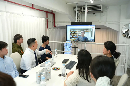 隨后,工作室創始人Ian Douglas-Jones通過線上視頻的方式參會,他對學院一行來訪表示熱烈歡迎,也非常期待優秀的中英學子能夠加入進工作室團隊。Adrian向其介紹了學院的概況以及工科學生在各類競賽中的表現和成果。院企雙方結合學院育人目標及工作室發展需求展開討論,希望以此次走訪為契機,在拓展學生就業渠道、提升項目實操經驗的基礎上,未來能夠根據實際項目需要進行人才的定向培養,實現精準就業。
