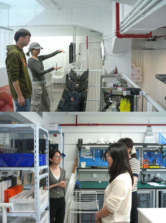 座談會結束后,學院一行參觀了INDJ工作室。學生代表和工作室成員就部分設計成果展開熱烈討論。來自2021級電子信息科學與技術專業的張一帆同學表示,通過本次走訪,他看到了現代科技與建造藝術結合后誕生的產品能夠給人帶來驚艷的視覺效果,重新規劃了自身就業方向,此次參訪為自己的個人生涯規劃提供了新的選擇。