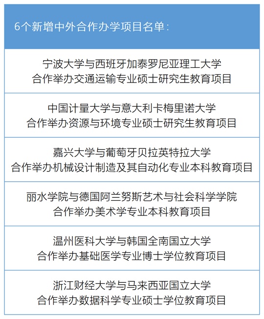 | 浙江省新增一批中外合作辦學(xué)機(jī)構(gòu)和項(xiàng)目 |