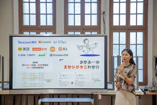 收官講座由2023屆校友梅佳蓉主講,圍繞申研與求職兩大議題展開。在申研板塊,她以時間軸拆解申請全流程,強調(diào)“早規(guī)劃、早準備”的重要性,并通過案例解析個人陳述撰寫要點及材料遞交規(guī)范,分享規(guī)避風(fēng)險的實用技巧。針對求職,梅佳蓉提出“崗位需求-個人優(yōu)勢雙向匹配”方法論,結(jié)合自身實習(xí)經(jīng)歷,闡釋如何通過數(shù)據(jù)量化成果、精準匹配關(guān)鍵詞提升簡歷競爭力,并傳授面試應(yīng)答技巧。她以“實習(xí)是一場重新認識自己的修行”總結(jié)實踐經(jīng)驗的價值,為學(xué)弟學(xué)妹指明職業(yè)探索方向。
