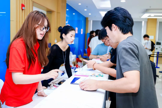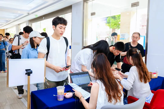 學院精心布置了系列展板與豐富多彩的互動打卡裝置,以此展現學校的深厚底蘊與精神傳承,并融入了學院“責任領導力、創業與創新、文化同理”三大核心育人理念,吸引了眾多新生與家長駐足體驗、拍照留念。