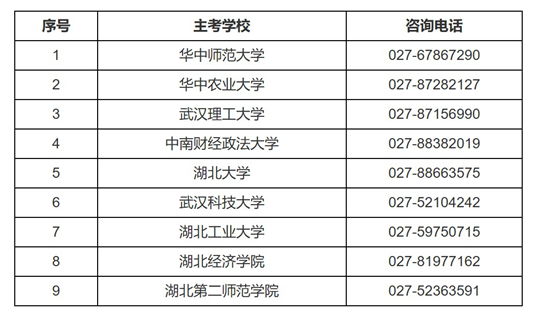 面向社會開考的主考學(xué)校及咨詢電話如下: