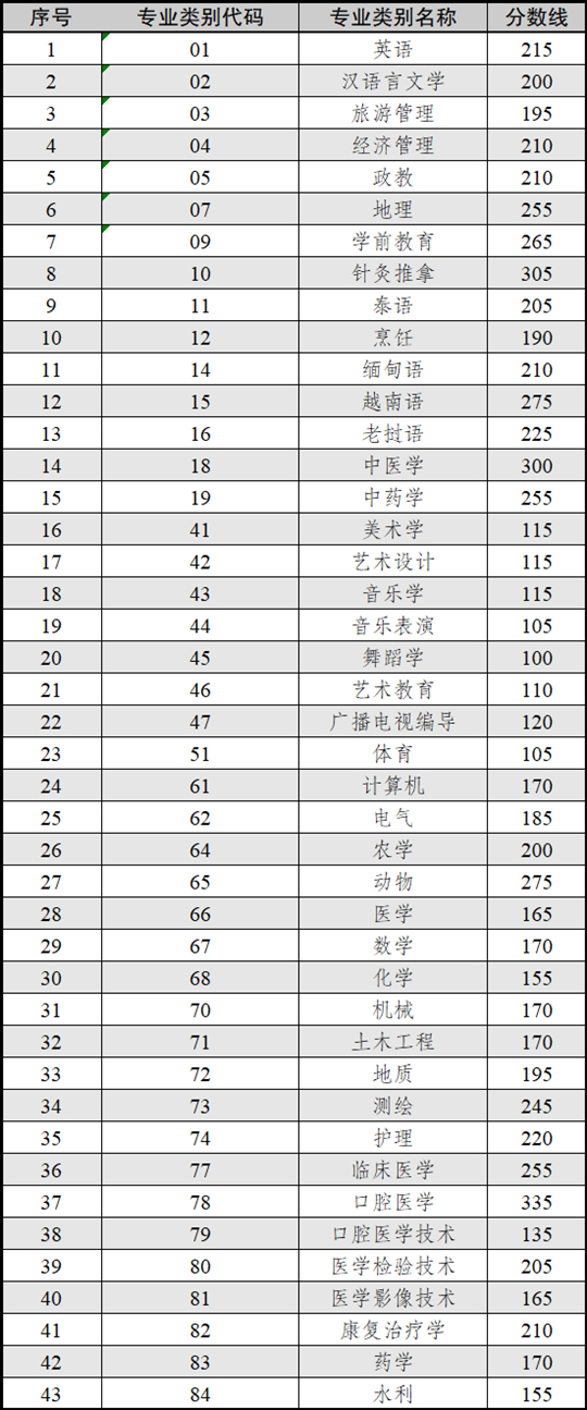| 云南省2025年普通高校專升本各專業(yè)類別最低錄取控制分?jǐn)?shù)線 |