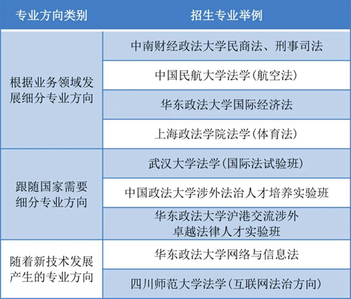 近年來,這種情況出現了一些變化,隨著業務細分程度更高,各個業務方向形成較高的壁壘,律師需要深耕于某一領域來增強競爭力。高校的人才培養也隨之細化,同一專業細分為不同方向。